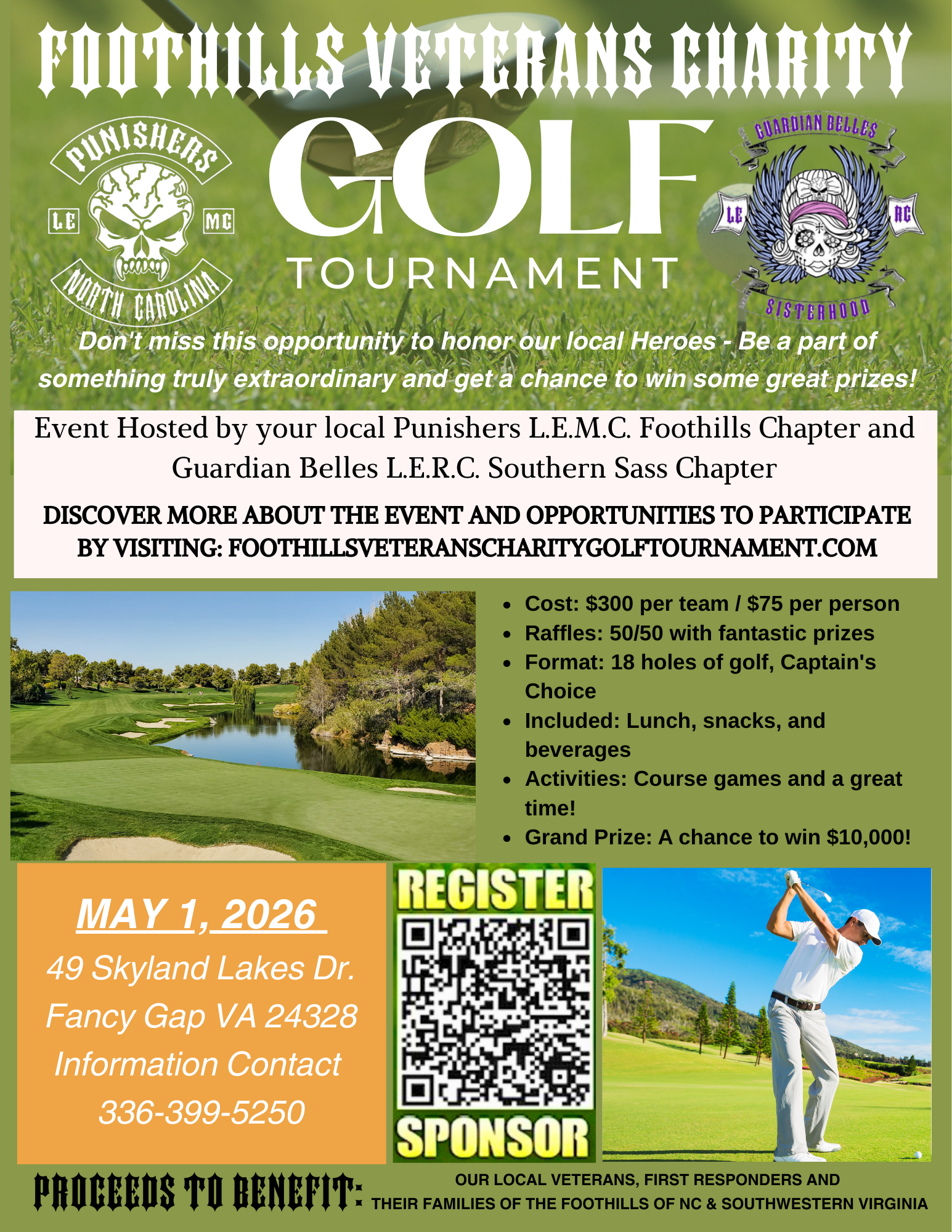We’re teeing up for a day of golf, good company, and giving back. This year’s tournament supports Veterans and First Responders from the Foothills of NC and Southwestern, VA—Honoring their service and those who stand beside them.